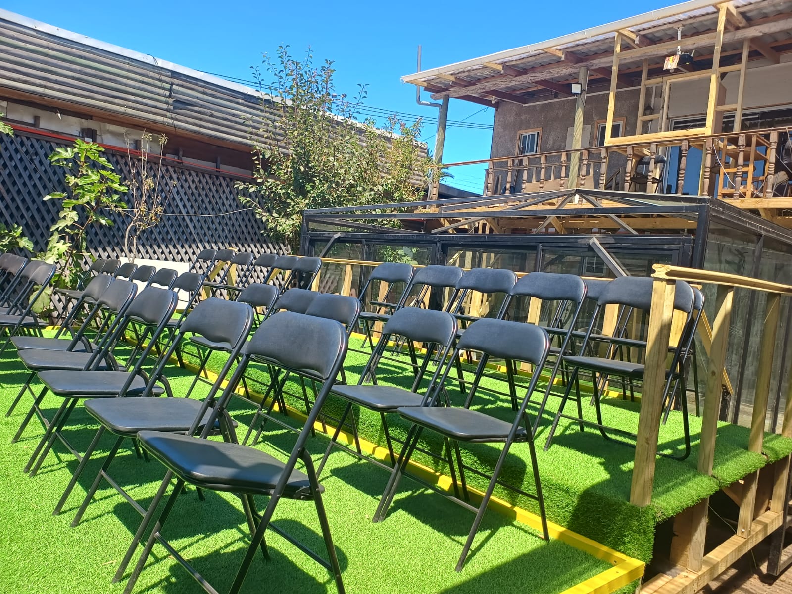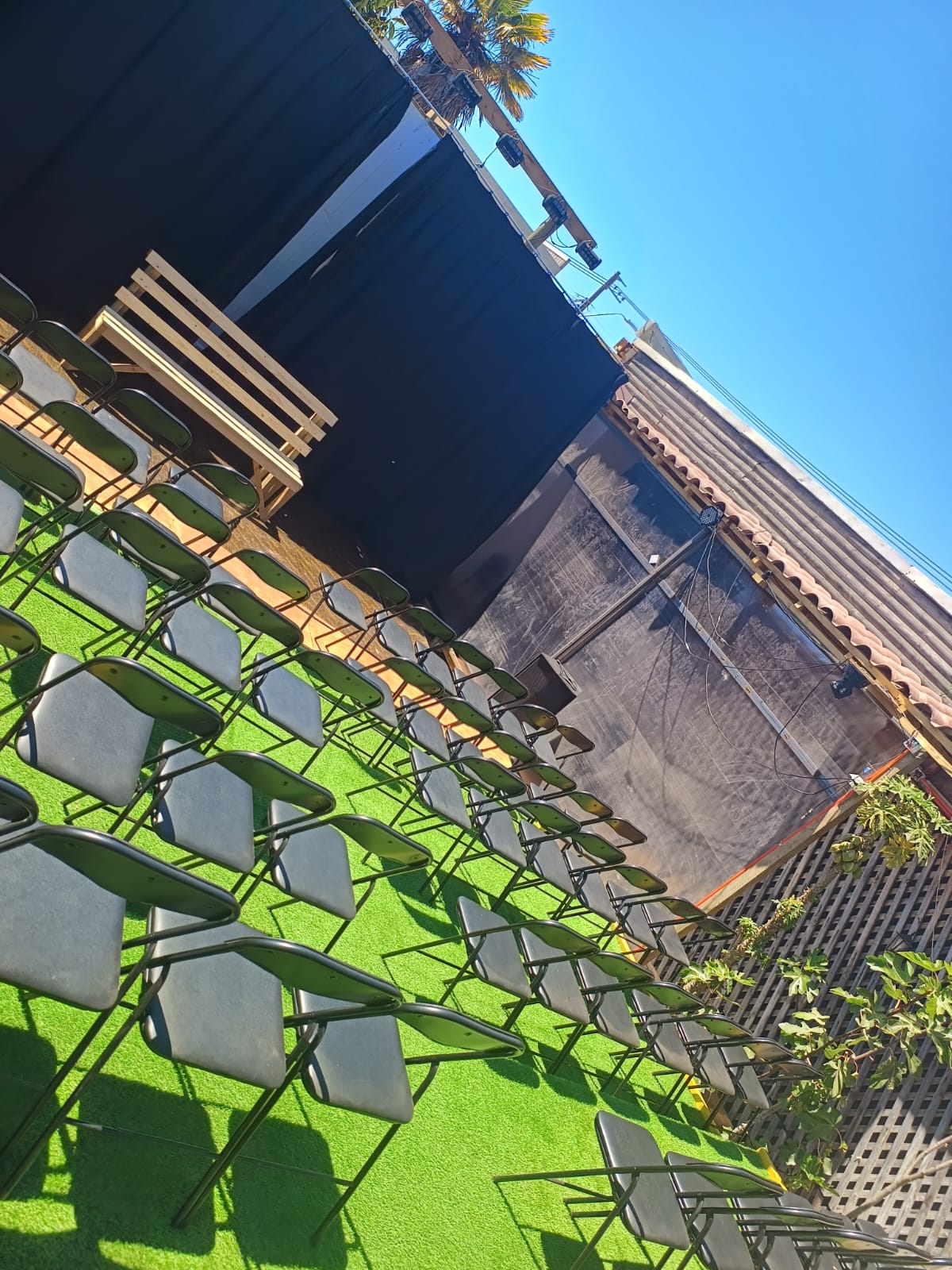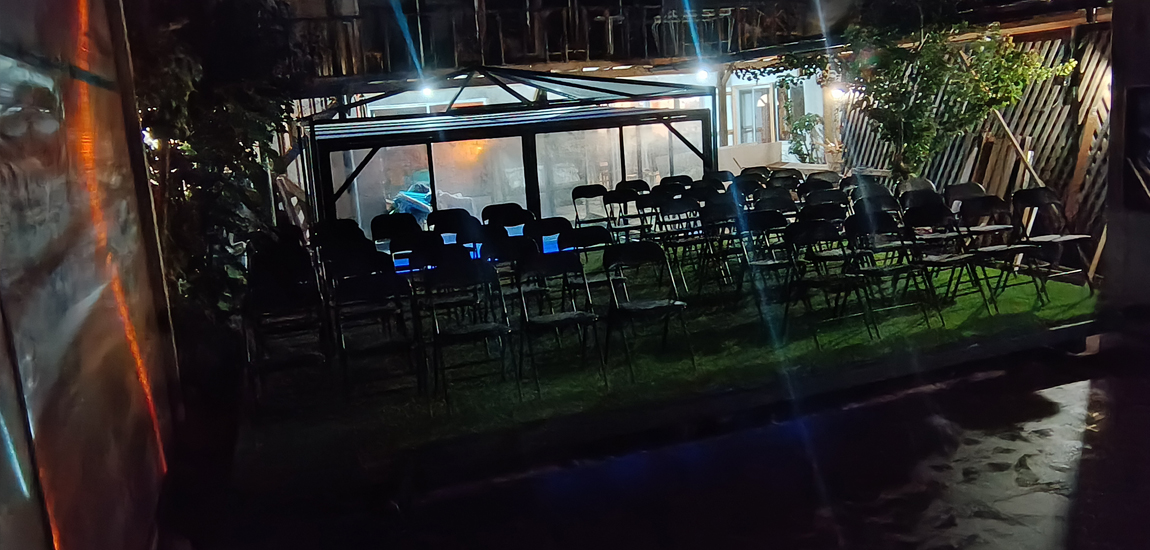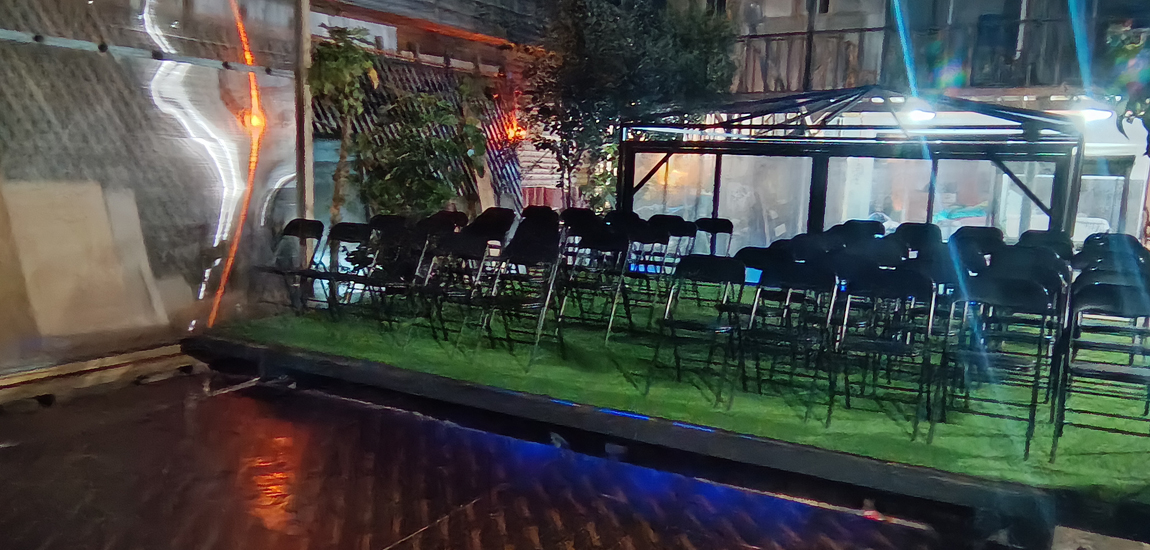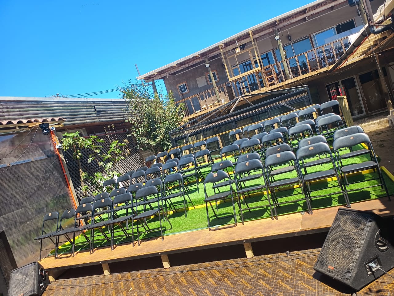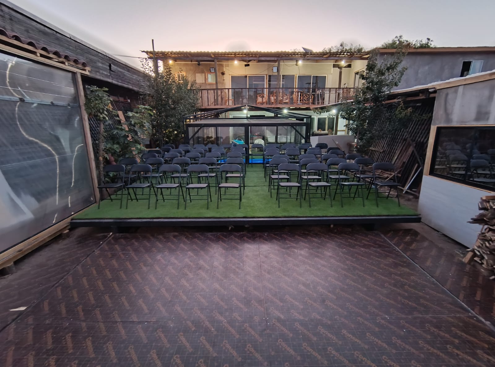 Anfiteatro Piedra de las Ventanas Este espacio está diseñado para alojar a 120 personas cómodamente. La piscina se cubre con una plataforma que se desliza desde el escenario, convirtiéndose en una galería para disfrutar la presentación. Sala equipada para presentaciones al aire libre.